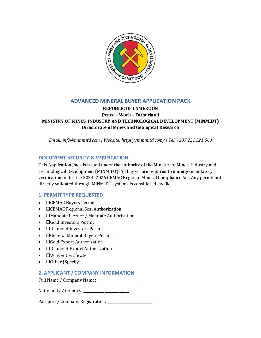 Gold Mandatory License in Cameroon – Official Buyer Registration & Online Application Guide (2025)